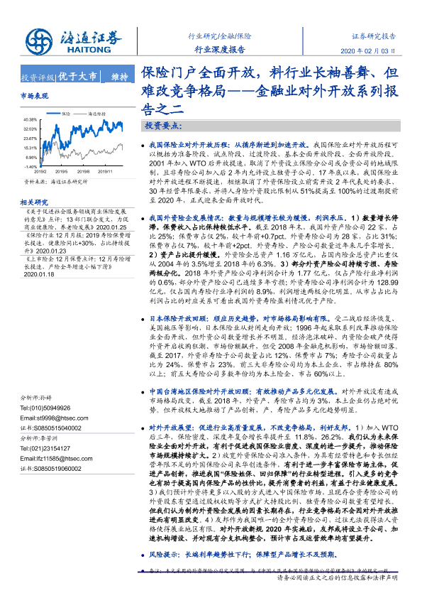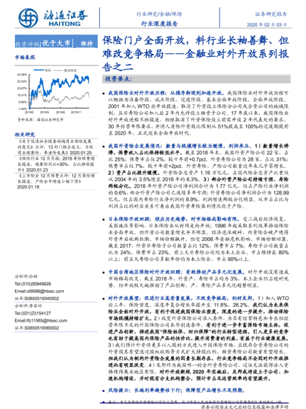 【海通证券】【20200203】保险行业深度报告:金融业对外开放系列报告之二-保险门户全面开放,料行业长袖善舞、但难改竞争格局-31页