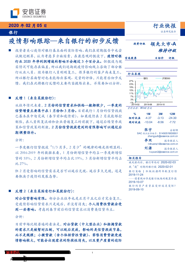 【安信证券】【20200205】银行行业快报:疫情影响跟踪—来自银行的初步反馈-6页