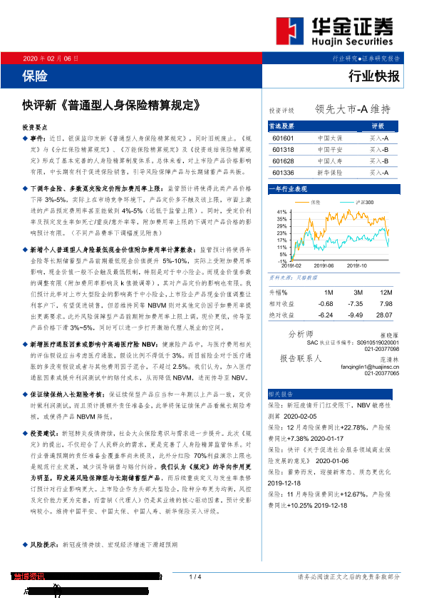 【华金证券】【20200206】快评新《普通型人身保险精算规定》-4页