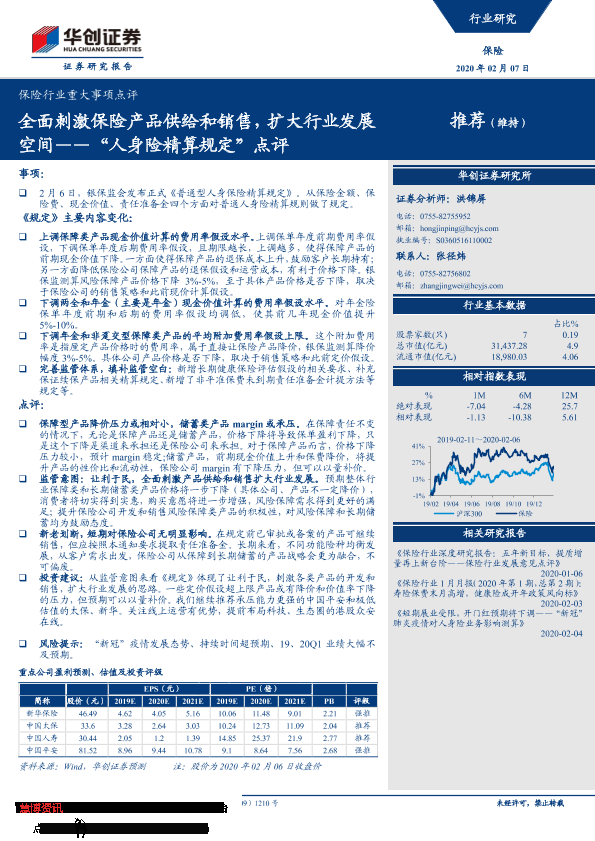 【华创证券】【20200207】全面刺激保险产品供给和销售,扩大行业发展空间——“人身险精算规定”点评-6页
