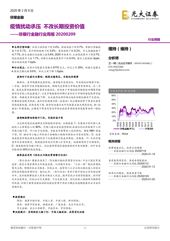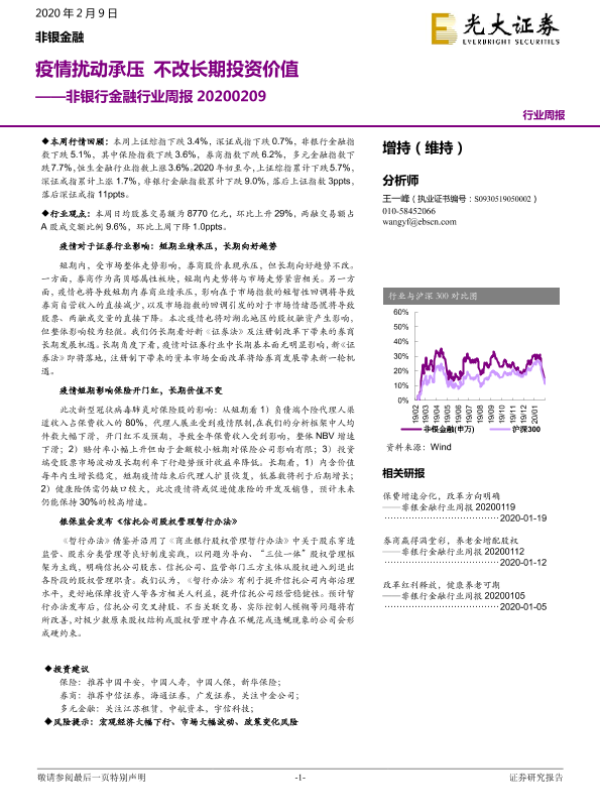 【光大证券】【20200209】非银行金融行业周报:疫情扰动承压 不改长期投资价值-17页