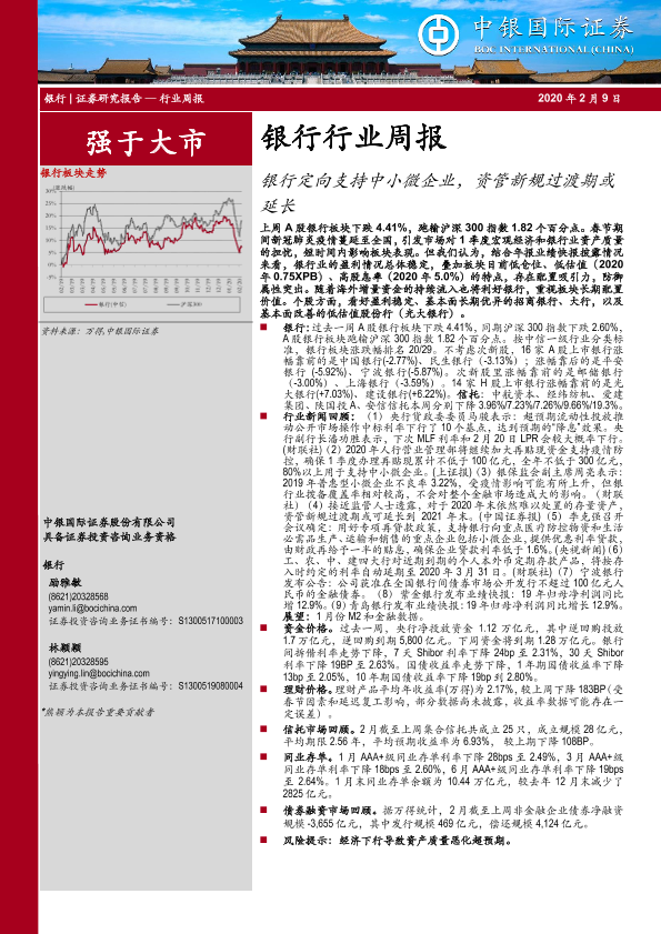 【中银证券】【20200209】银行行业周报:银行定向支持中小微企业,资管新规过渡期或延长-18页