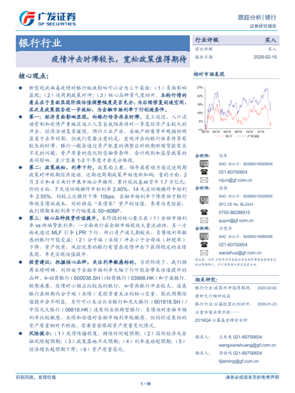 利率下行 宽松政策 投资建议 疫情影响 银行行业