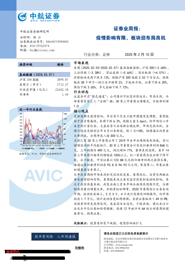 【中航证券】【20200210】证券业周报:疫情影响有限,板块迎布局良机-12页
