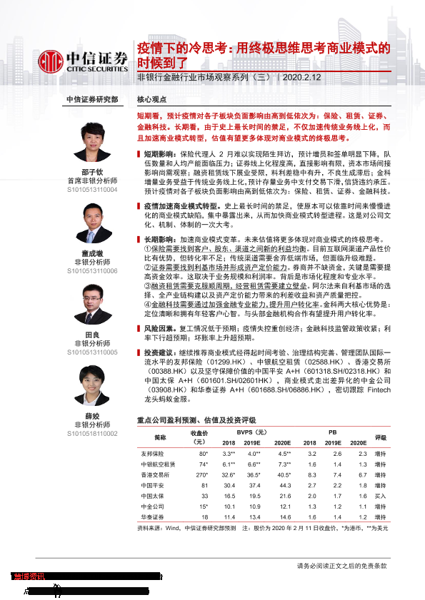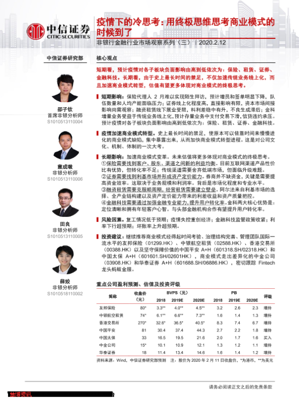 保险 商业模式转型 疫情影响 金融科技 非银行金融