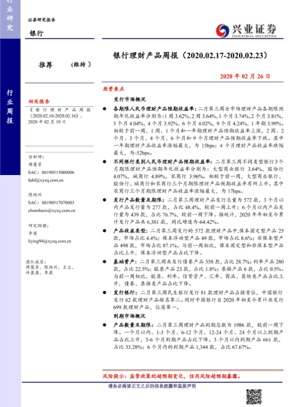到期市场 发行市场 金融产品 银行理财 预期收益率
