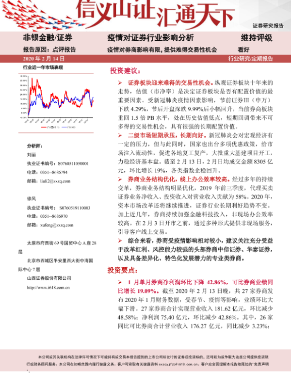 【山西证券】【20200214】疫情对证券行业影响分析:疫情对券商影响有限,提供难得交易性机会-14页