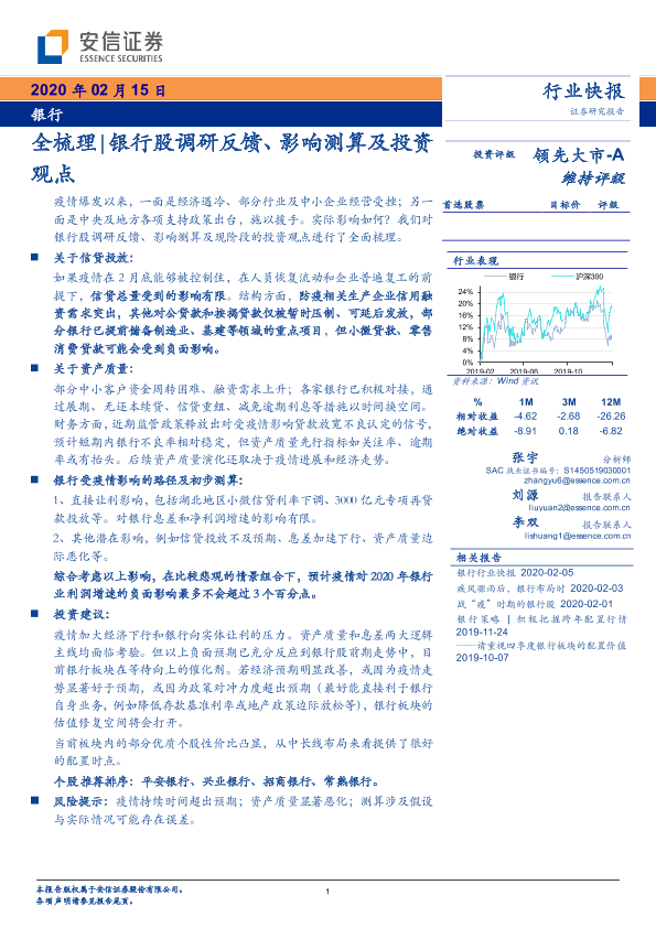 【安信证券】【20200215】全梳理 银行股调研反馈、影响测算及投资观点-8页