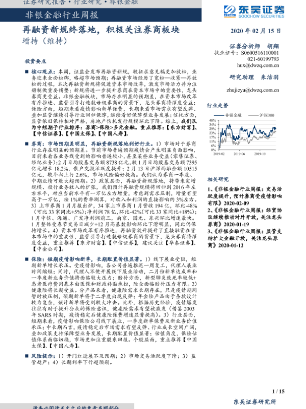 【东吴证券】【20200216】非银金融行业周报:再融资新规终落地,积极关注券商板块-15页
