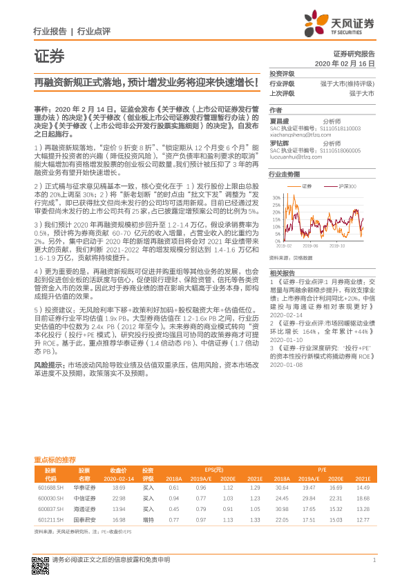 【天风证券】【20200216】再融资新规正式落地,预计增发业务将迎来快速增长-11页