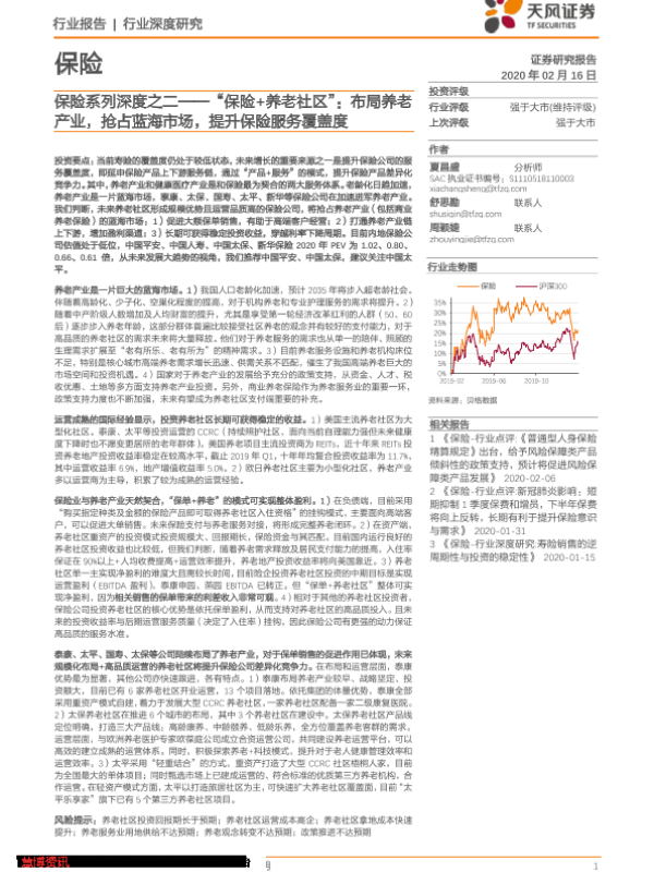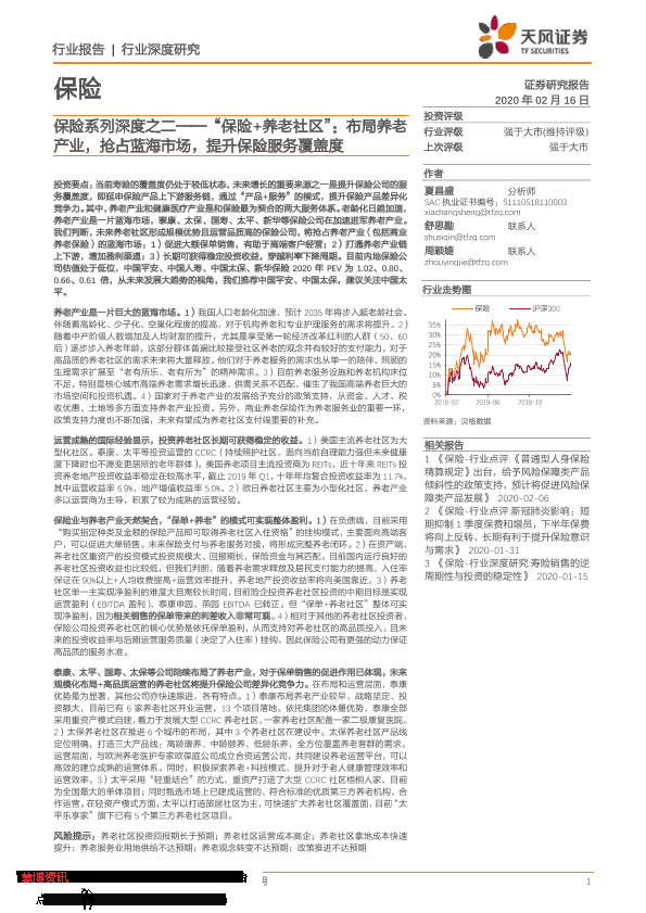 【天风证券】【20200216】保险系列深度之二——“保险+养老社区”:布局养老产业,抢占蓝海市场,提升保险服务覆盖度-38页