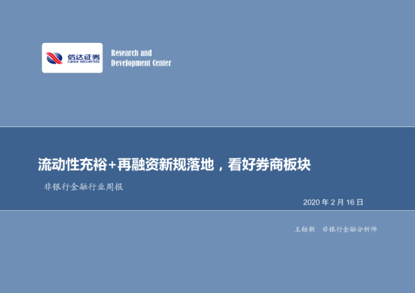 【信达证券】【20200216】非银行金融行业周报:流动性充裕+再融资新规落地,看好券商板块-13页