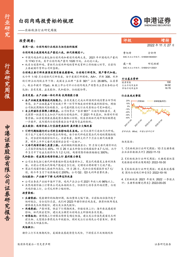 【申港证券】【20221127】农林牧渔行业研究周报:白羽肉鸡投资标的梳理-15页