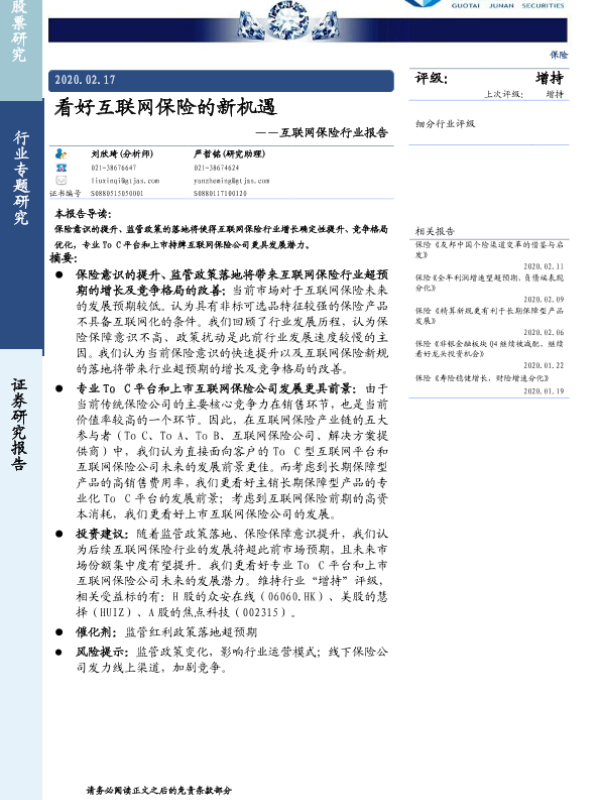 【国泰君安证券】【20200217】看好互联网保险的新机遇-18页
