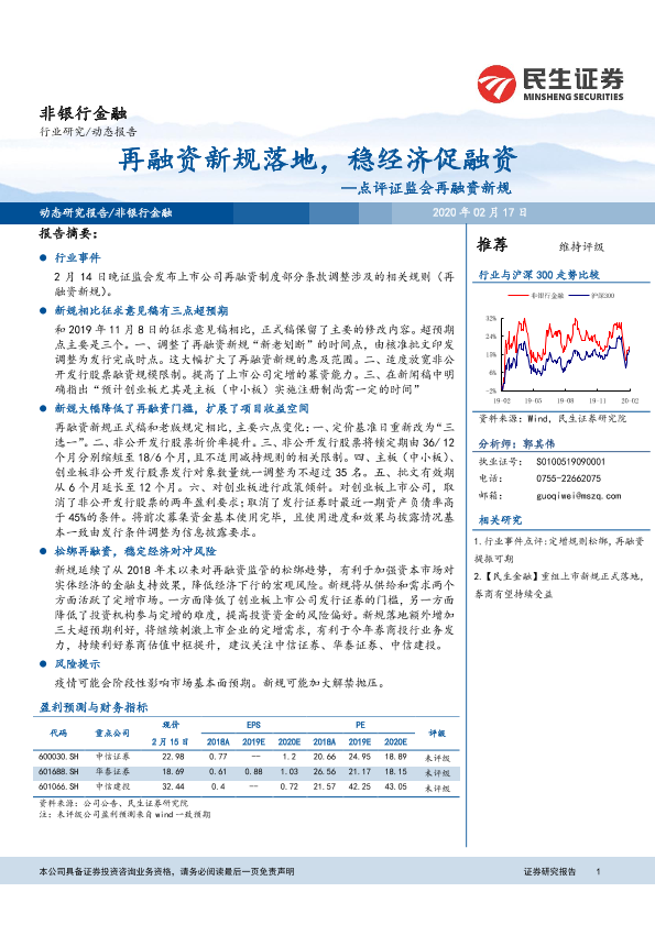 【民生证券】【20200217】非银行金融点评证监会再融资新规:再融资新规落地,稳经济促融资-9页