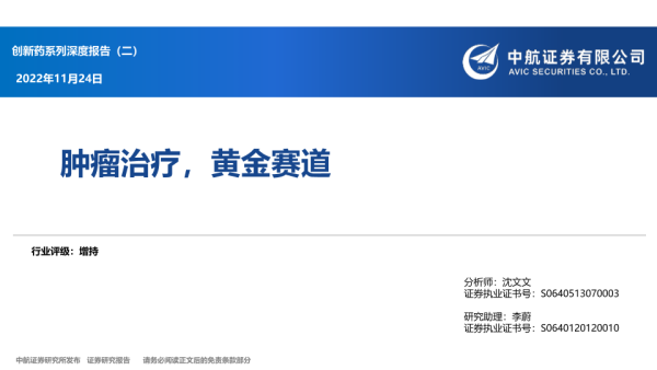 【中航证券】【20221124】创新药系列深度报告(二):肿瘤治疗,黄金赛道-94页