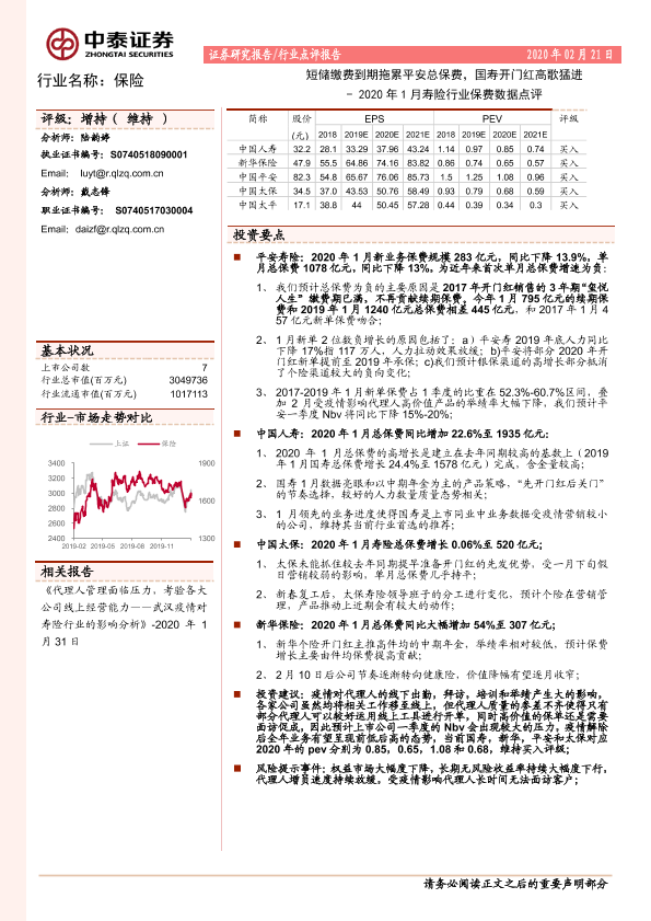 【中泰证券】【20200221】2020年1月寿险行业保费数据点评-2页