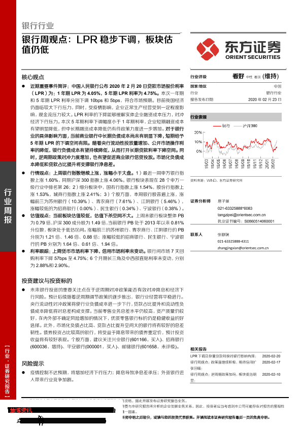 【东方证券】【20200223】银行周观点:LPR稳步下调,板块估值仍低-13页
