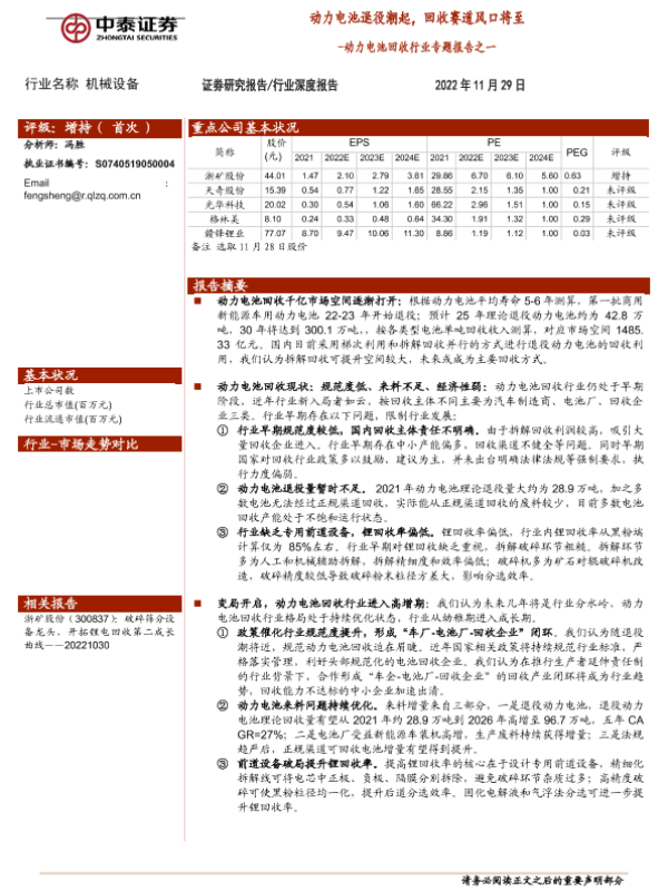 【中泰证券】【20221129】动力电池回收行业专题报告之一:动力电池退役潮起,回收赛道风口将至-26页