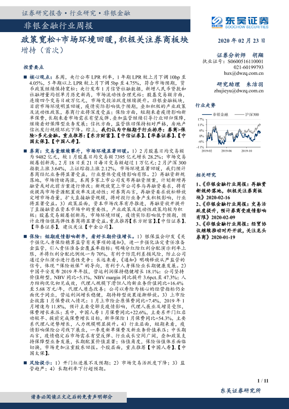 【东吴证券】【20200223】非银金融行业周报:政策宽松+市场环境回暖,积极关注券商板块-11页