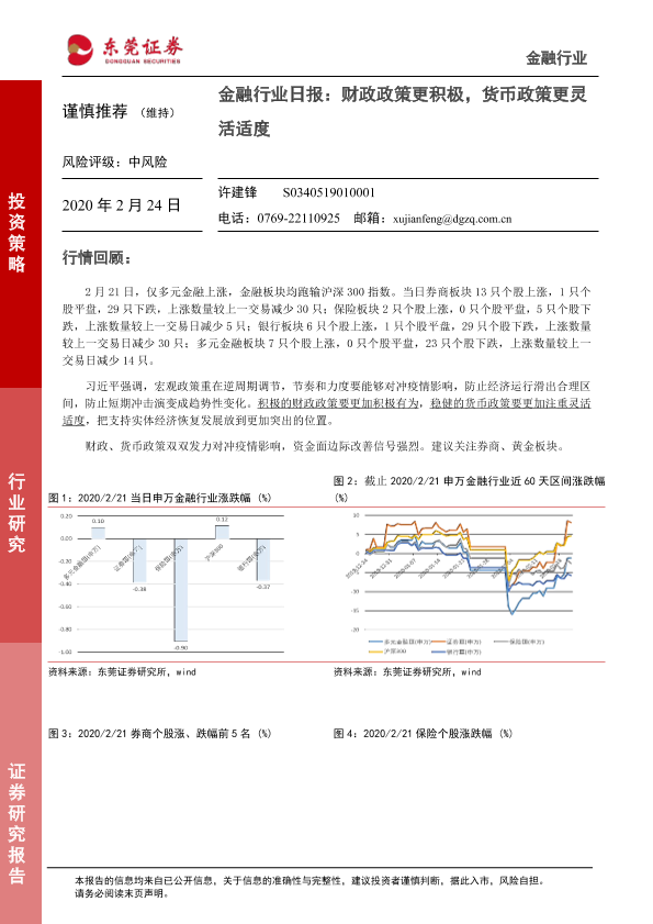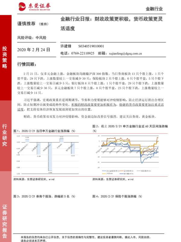 【东莞证券】【20200224】金融行业日报:财政政策更积极,货币政策更灵活适度-5页