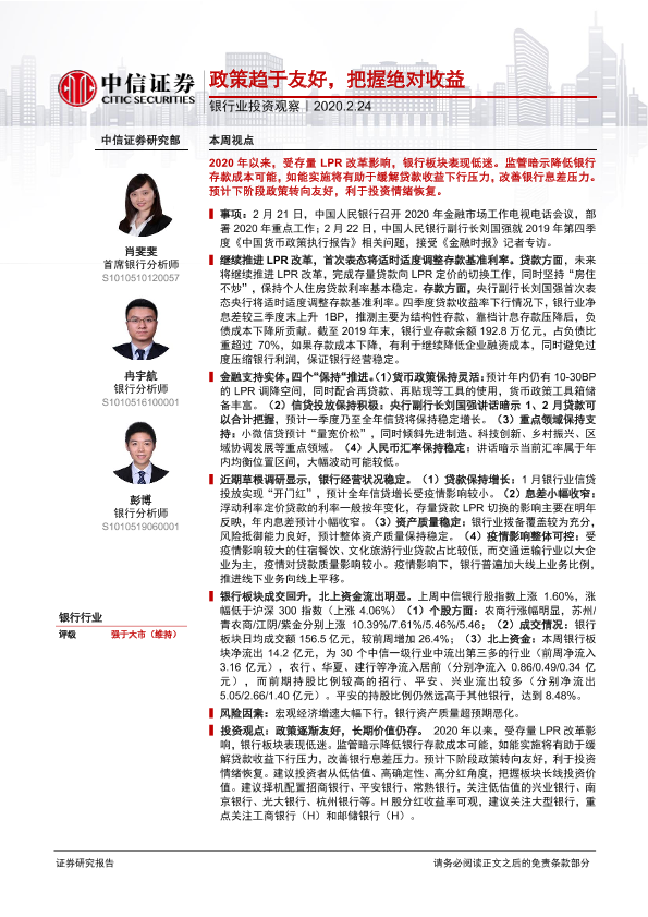 【中信证券】【20200224】银行业投资观察:政策趋于友好,把握绝对收益-10页