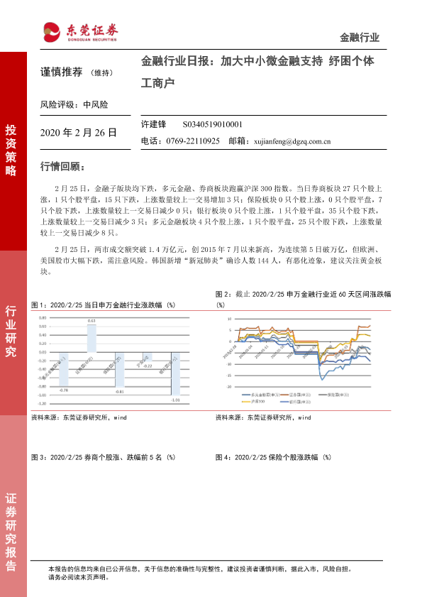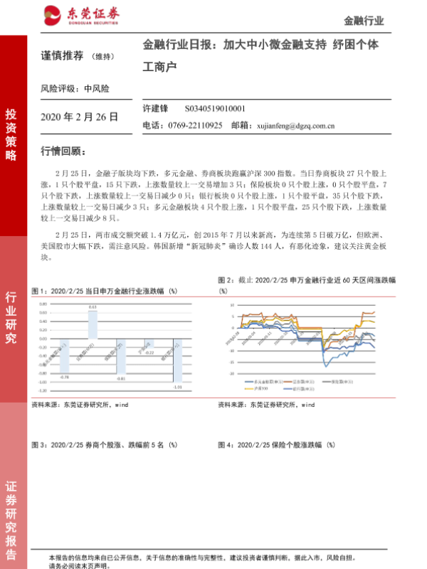 【东莞证券】【20200226】金融行业日报:加大中小微金融支持 纾困个体工商户-4页