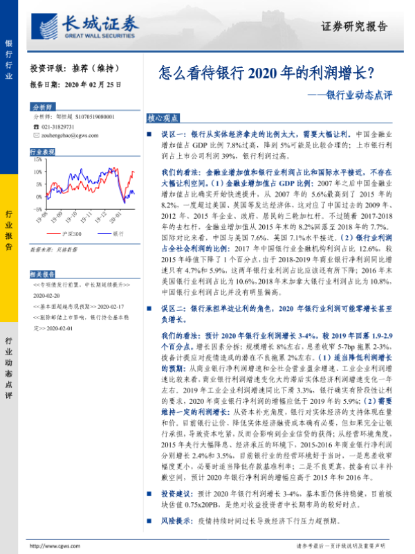 【长城证券】【20200225】怎么看待银行2020年的利润增长-7页