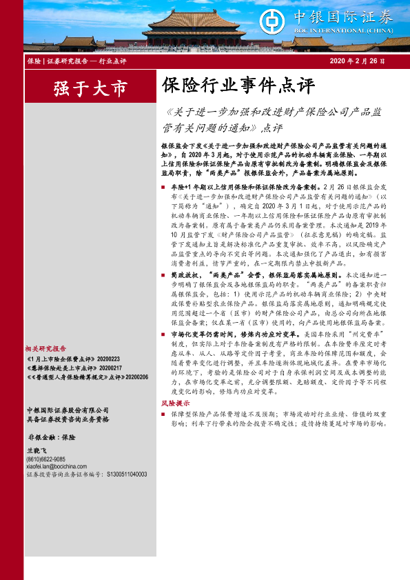 【中银证券】【20200226】关于进一步加强和改进财产保险公司产品监管有关问题的通知点评-4页