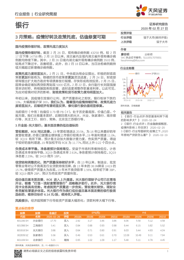 【天风证券】【20200227】3月策略:疫情好转及政策托底,估值修复可期-5页