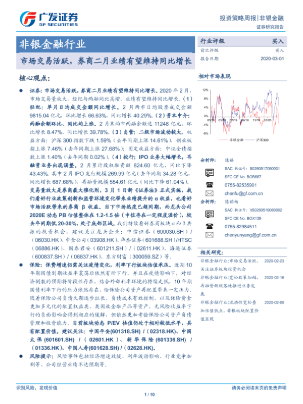 【广发证券】【20200301】非银金融行业投资策略周报:市场交易活跃,券商二月业绩有望维持同比增长-10页