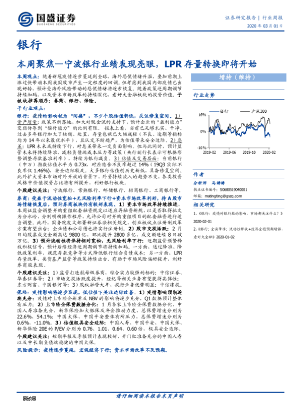 【国盛证券】【20200301】银行本周聚焦:宁波银行业绩表现亮眼,LPR存量转换即将开始-14页