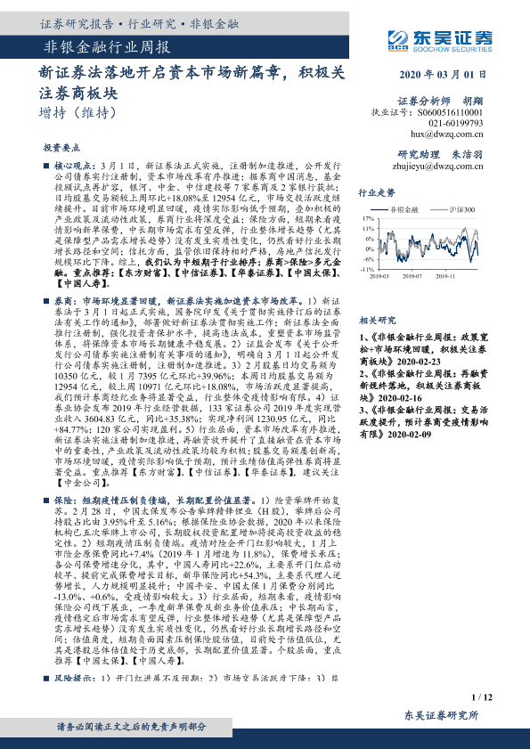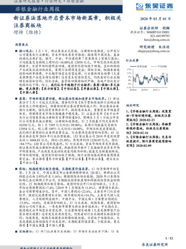 【东吴证券】【20200301】非银金融行业周报:新证券法落地开启资本市场新篇章,积极关注券商板块-12页