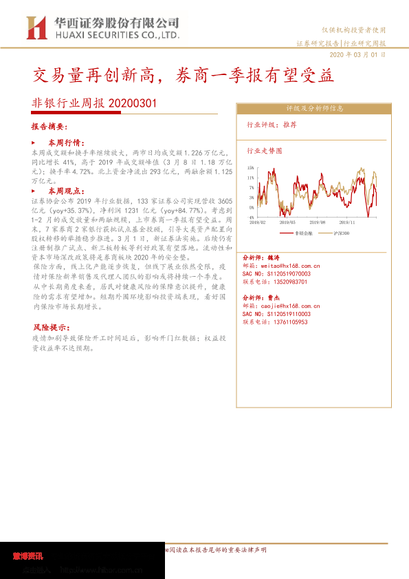 【华西证券】【20200301】交易量再创新高,券商一季报有望受益-12页