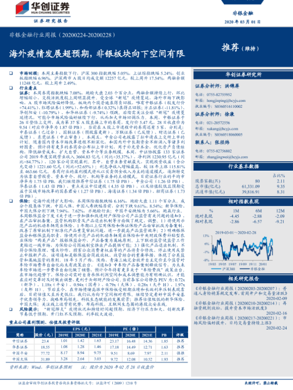 【华创证券】【20200301】非银金融行业周报:海外疫情发展超预期,非银板块向下空间有限-15页