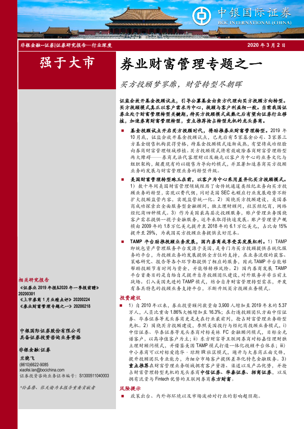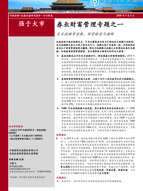 【中银证券】【20200302】券业财富管理专题之一:买方投顾梦寥廓,财管转型尽朝晖-43页