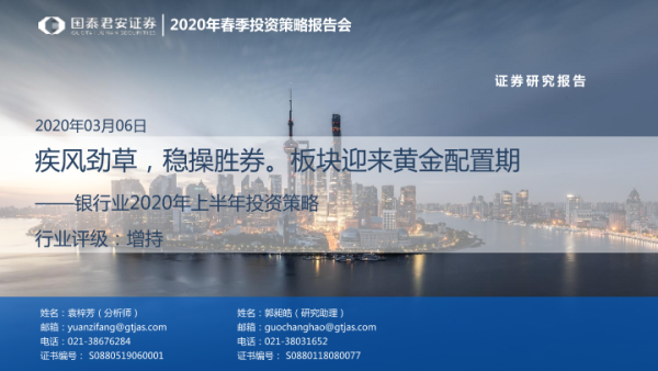 【国泰君安证券】【20200306】银行业2020年上半年投资策略:疾风劲草,稳操胜券。板块迎来黄金配置期-25页