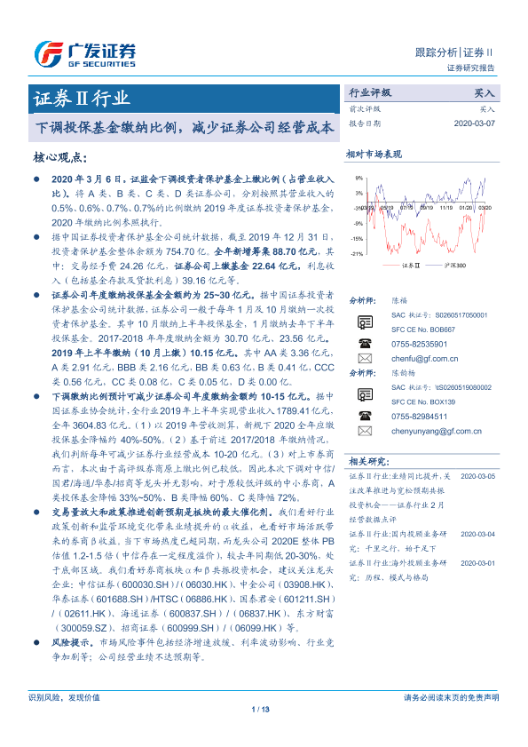【广发证券】【20200307】下调投保基金缴纳比例,减少证券公司经营成本-13页