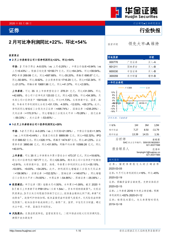 【华金证券】【20200308】证券行业快报:2月可比净利润同比+22%、环比+54%-6页