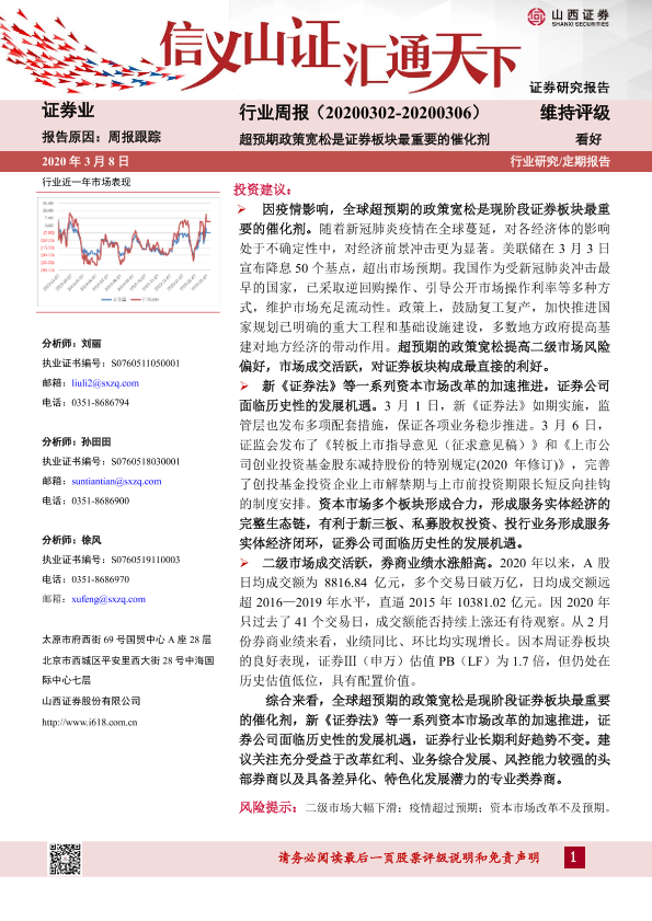 【山西证券】【20200308】证券行业周报:超预期政策宽松是证券板块最重要的催化剂-10页