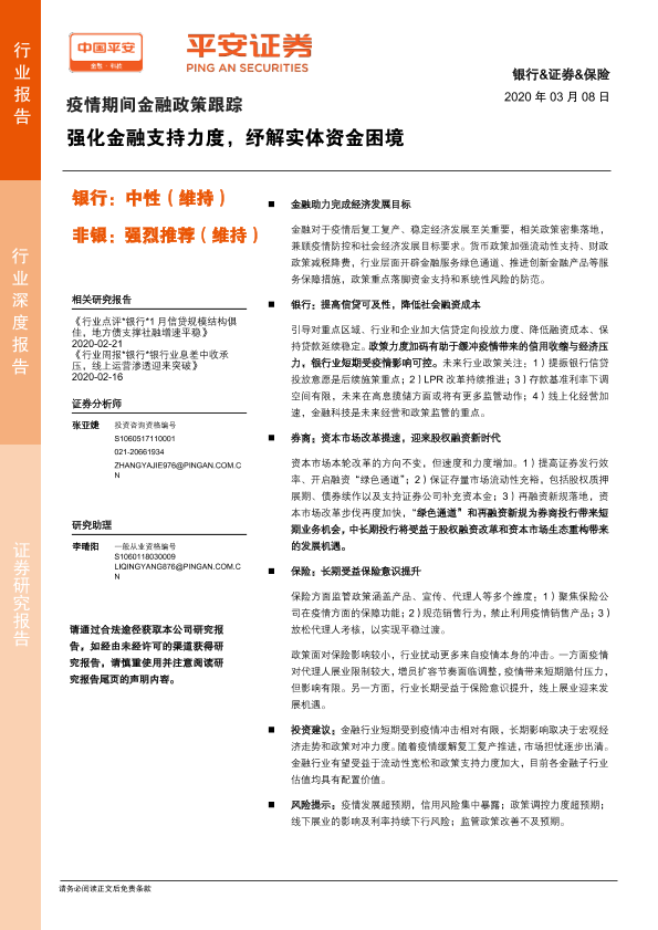 【平安证券】【20200308】疫情期间金融政策跟踪:强化金融支持力度,纾解实体资金困境-19页