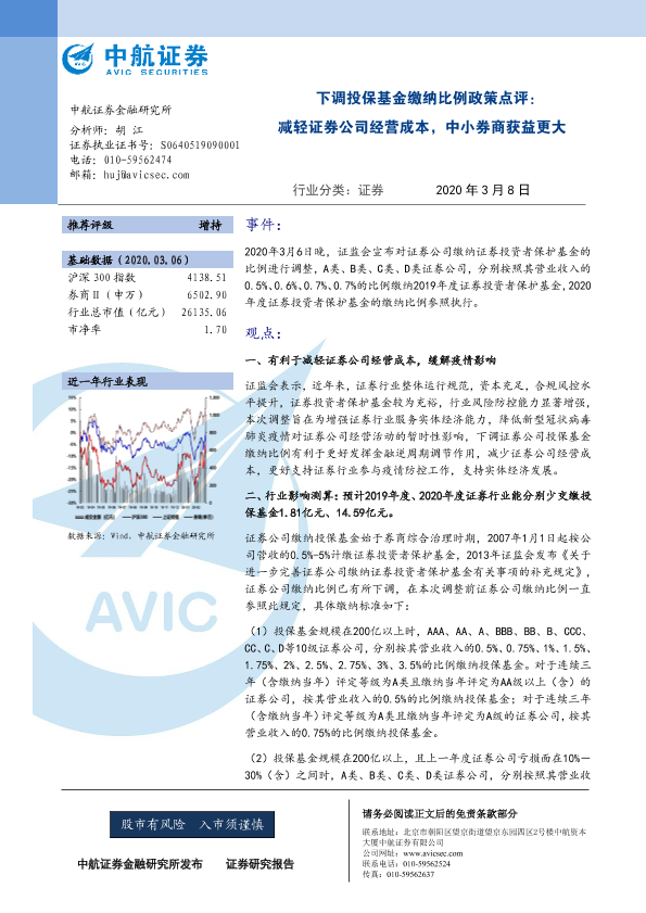 【中航证券】【20200308】下调投保基金缴纳比例政策点评:减轻证券公司经营成本,中小券商获益更大-5页