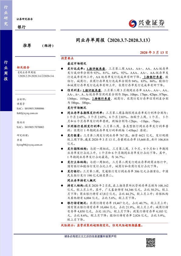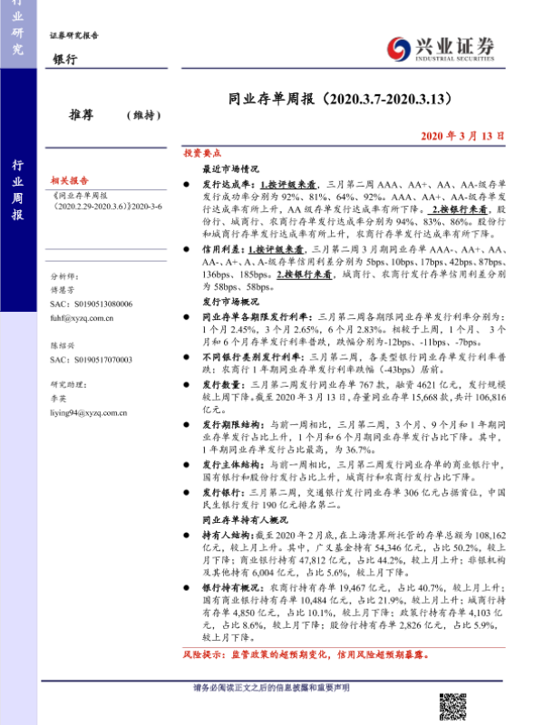 【兴业证券】【20200313】同业存单周报-13页