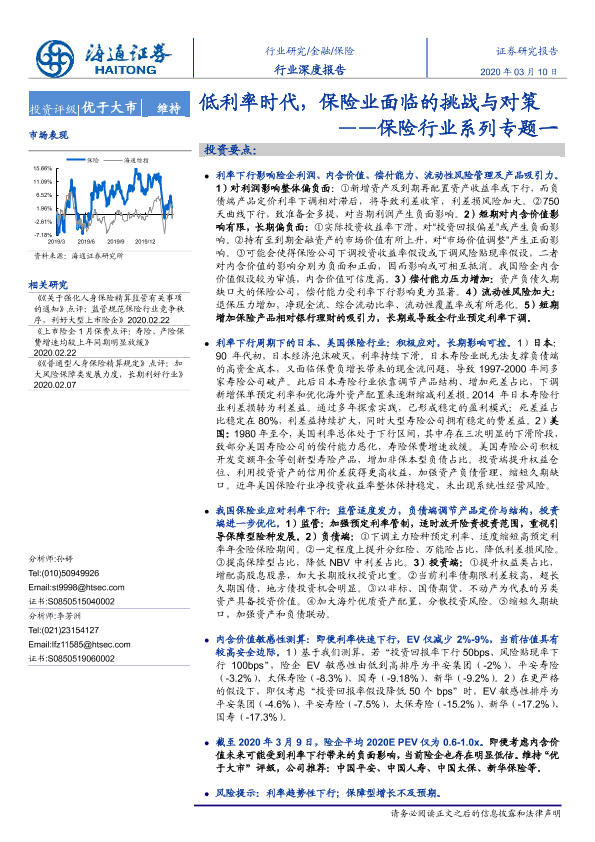 【海通证券】【20200310】低利率时代,保险业面临的挑战与对策-39页