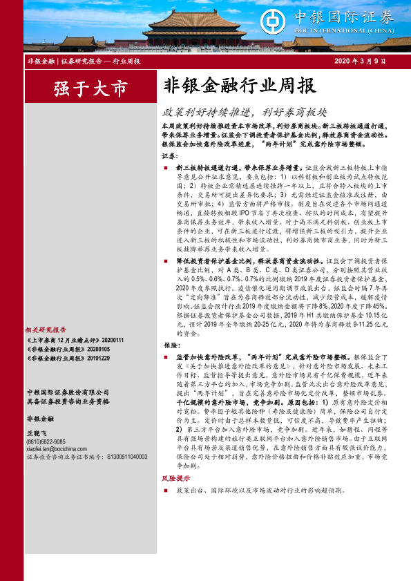 【中银证券】【20200309】非银金融行业周报:政策利好持续推进,利好券商板块-11页