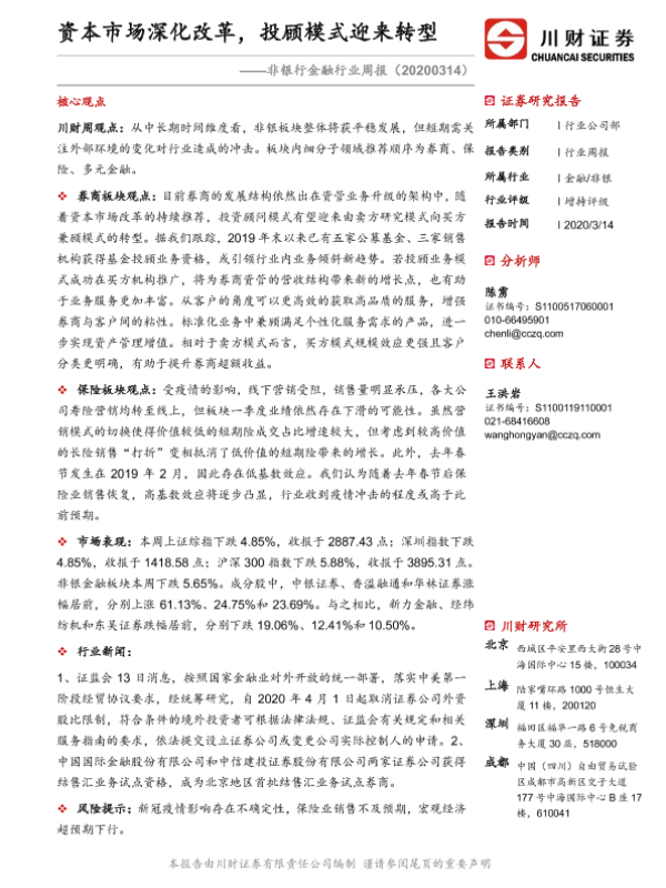 【川财证券】【20200314】非银行金融行业周报:资本市场深化改革,投顾模式迎来转型-10页