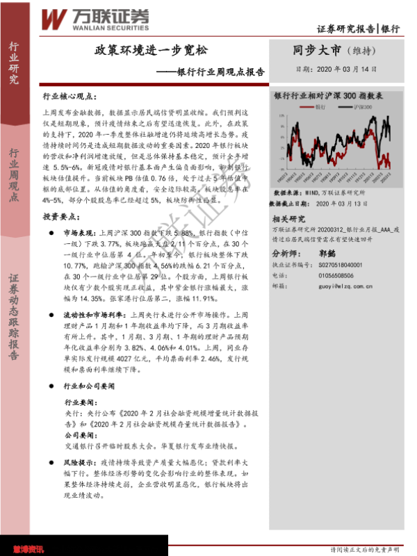 【万联证券】【20200314】银行行业周观点报告:政策环境进一步宽松-10页