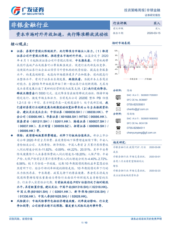 【广发证券】【20200315】非银金融行业投资策略周报:资本市场对外开放加速,央行降准释放流动性-10页