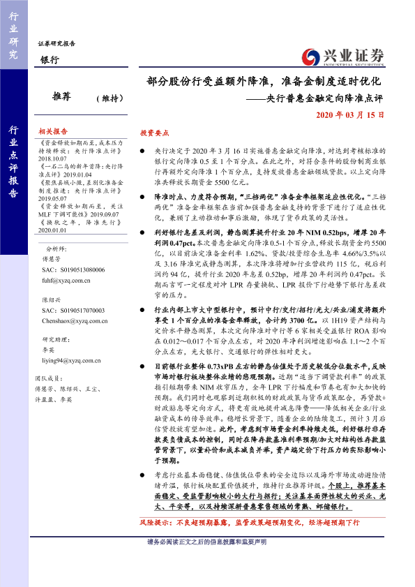 【兴业证券】【20200315】部分股份行受益额外降准,准备金制度适时优化-5页