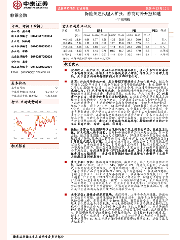 【中泰证券】【20200315】非银周报:保险关注代理人扩张,券商对外开放加速-14页